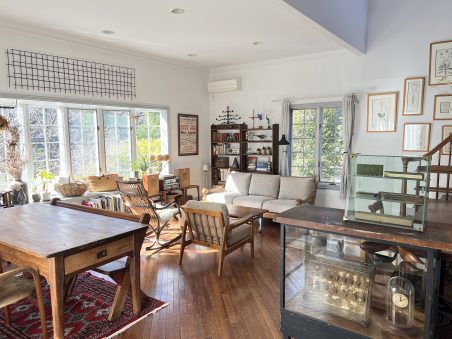 スタジオ詳細豊かな自然に囲まれたロケーションと、海外の一軒家のような雰囲気の建物が特徴。 室内はアンティーク家具や、ヴィンテージ雑貨などがディスプレイされており 造形作家のオーナーが製作するショーケースやオブジェ、その材料となる古道具 キッチンツール、ヴィンテージ食器、キャンプ用品、服飾雑貨まで様々なアイテムがございます。
